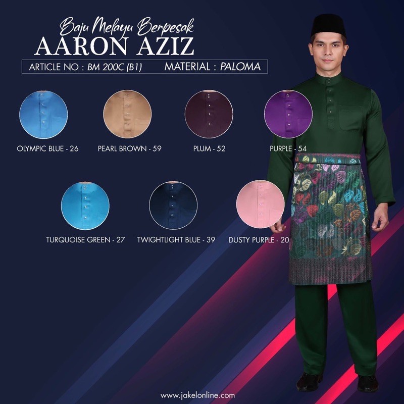 Ready to wear baju melayu aaron aziz paloma by jakel material : Buy baju melayu aaron aziz jakel purple in ampang,malaysia. Italian paloma (80% polyester and 20% viscose) size : Ready apparel, men, baju melayu, aaron aziz collection. Jakel free shipping baju melayu aaron aziz exclusive paloma / package with sampin & button b3. 14 days return to seller. Worn once only for my 16years old brother.